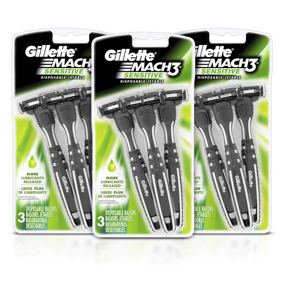 Gillette Mach3 Sensitive Mens Disposable Razors 9 Count