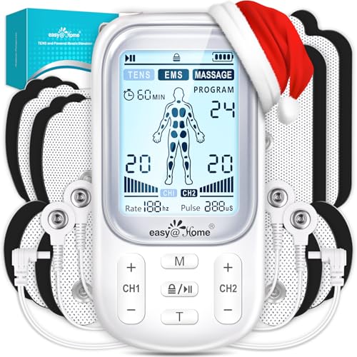Easy@Home Tens Machine EMS: TENS Machine for Pain Relief EMS Muscle Stimulator for Back Pain | Back Massage Machine for Pain | Arthritis Pain Relief | Dual Channel 24 Modes 16 Pads Replacements