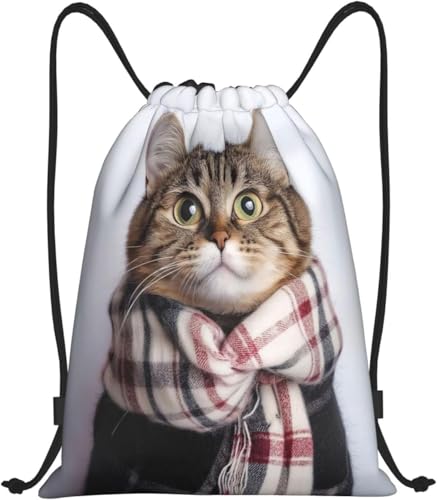 String Bag Photograph Of Adorable Tabby Cat Wearing Scarf Drawstring Backpack Machine Washable Sackpack Unisex Gym Bag For Training Camping Travel 36X42Cm