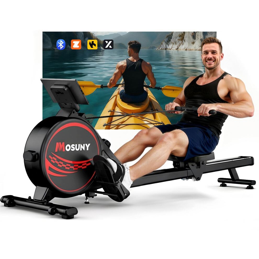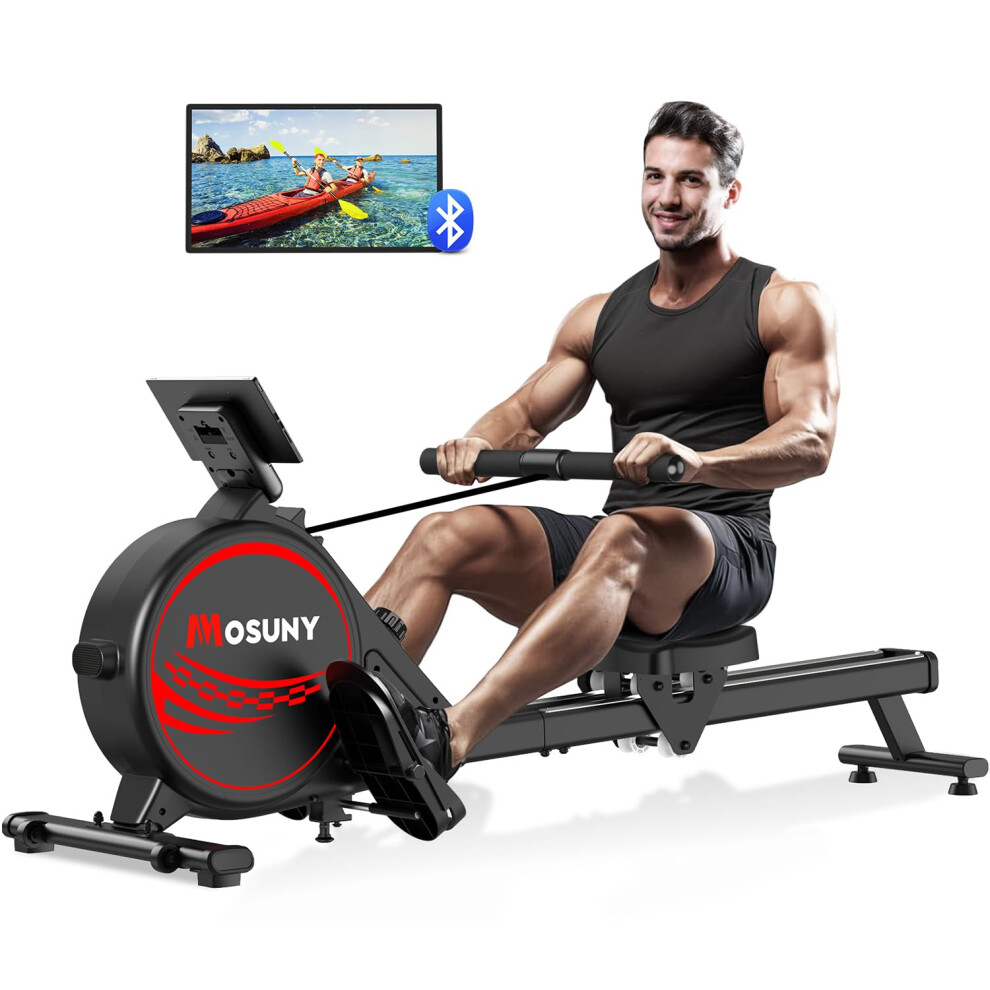 Rowing Machine, MOSUNY Magnetic Rowing Machines for Home Gym with 16 Levels Resistance, Maximum Load of 350 LB, Upgrade to Double Slide Rails, App