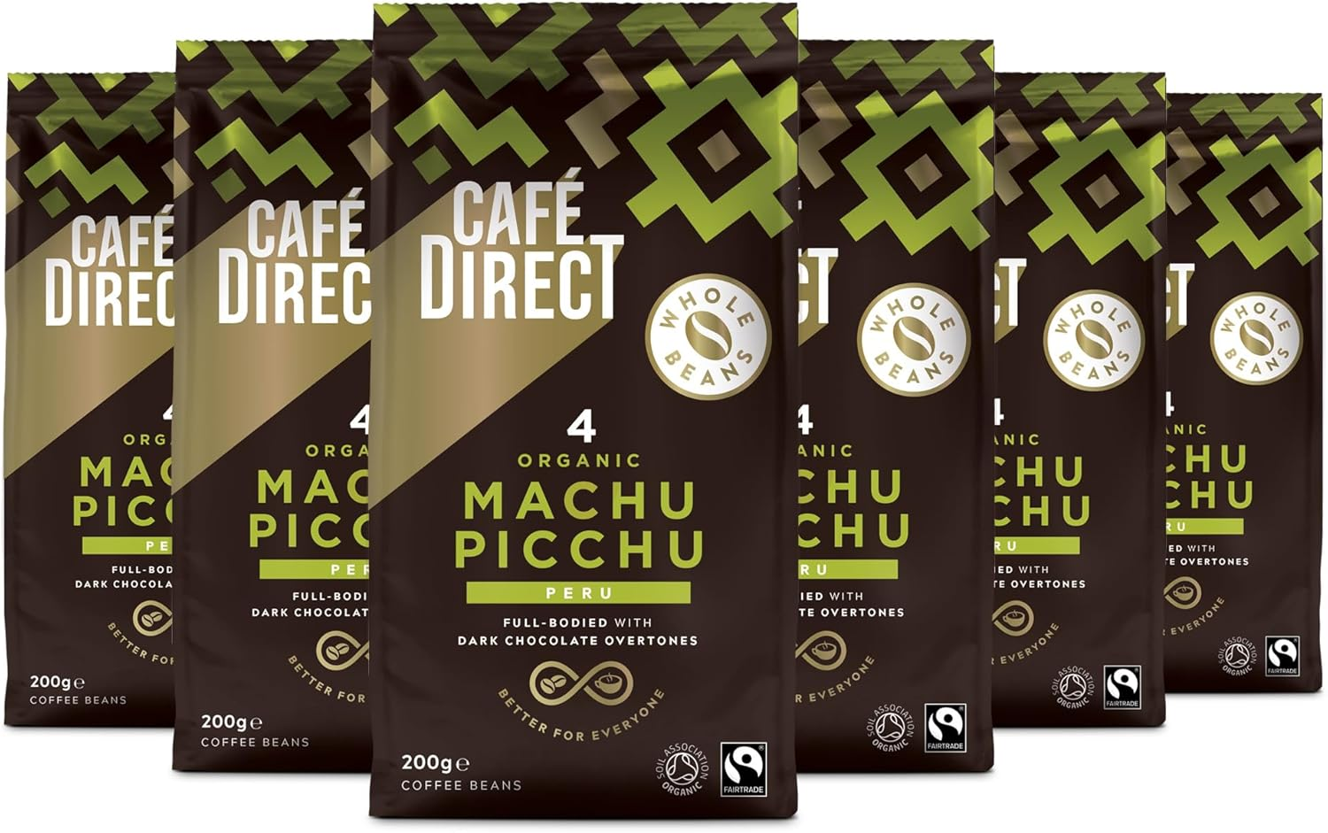 Cafédirect Fairtrade Machu Picchu Whole Bean Arabica Coffee, 200 g (Pack of 6)