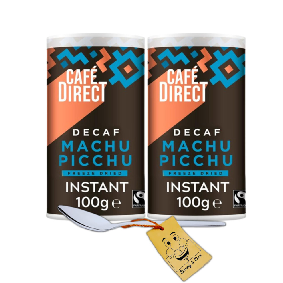 Decaffeinated Instant Coffee Bundle ? Includes: 2x Cafe Direct Machu Picchu Fairtrade Decaf Coffee (100g) Freeze Dried ?and 1 x Stainless Little