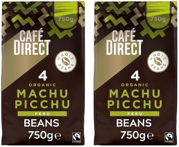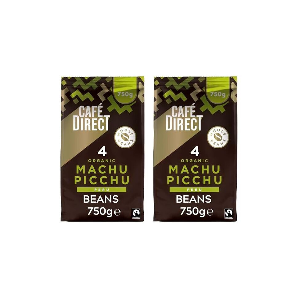 Cafédirect Machu Picchu Coffee Beans, Medium-Dark Roast, Organic and Fairtrade, 100 Percent Arabica Coffee Beans, 750 g (Pack of 2)