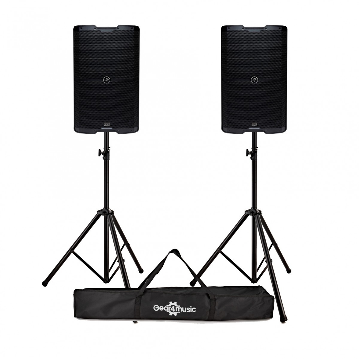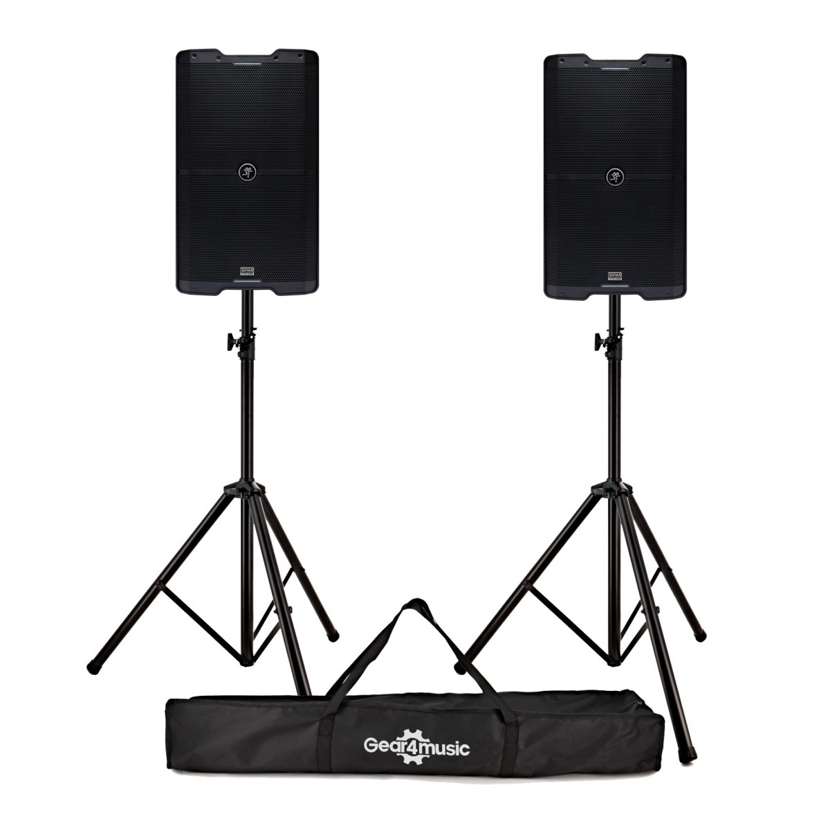 Mackie SRM215 V-Class 15 Active PA Speakers Pair with Stands & Bag