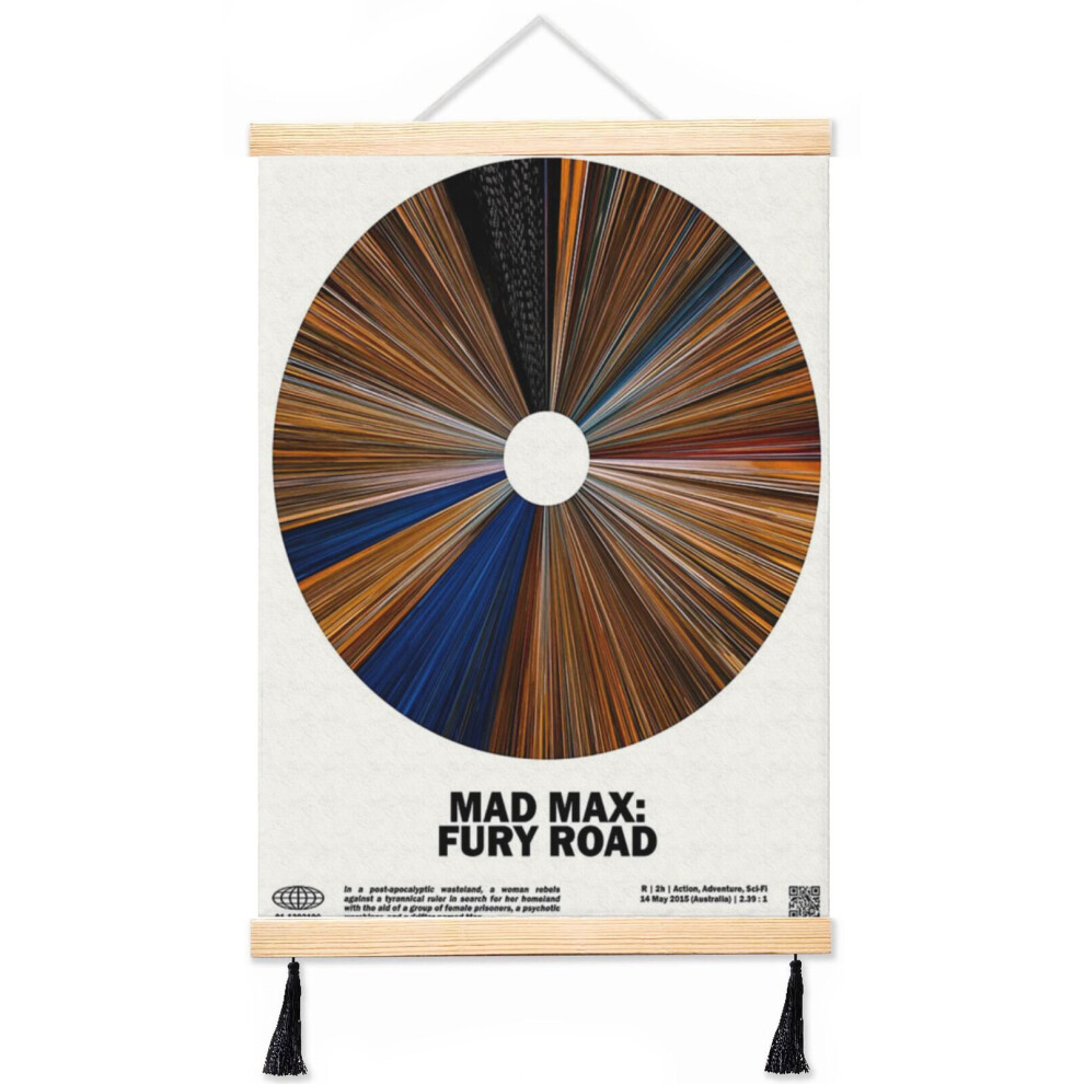 (Minimal_Mad Max Fury Road Warp Barcode Movie _863) Canvas Poster Hanging Kit Frame 16x20 Inch Wall Hanger with Tassels Art Home Decor Funny for Class