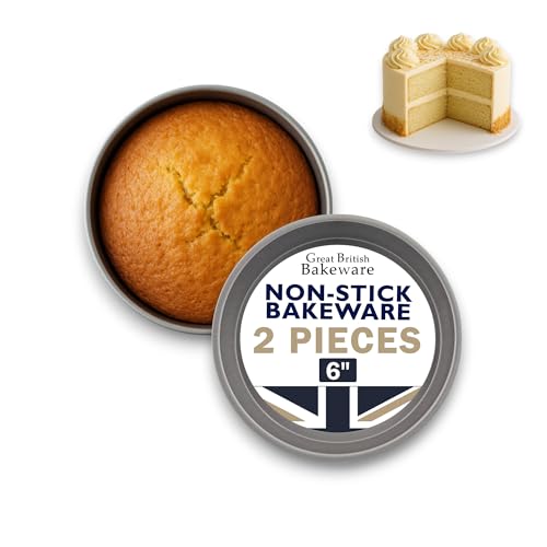 Great British Bakeware 2 Pack 6" Superior Double Coated Non-Stick Victoria Sandwich Cake Tin, Straight Sided, Baking, Oven Safe, Round Cake Tin, Fixed Base, PFOA & BPA Free Cookware, Made in England