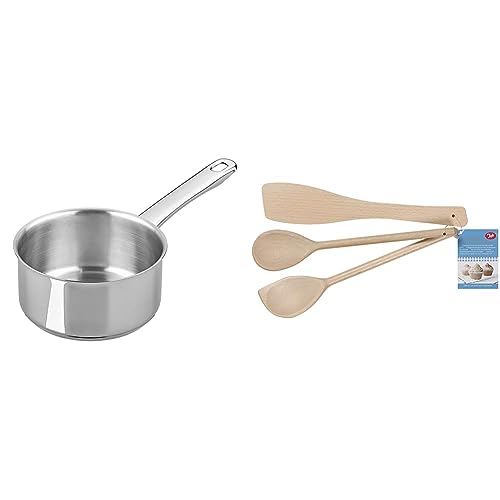 Tala Performance Stainless Steel Cookware 14cm Milk pan. Made in Portugal, with Guarantee, Suitable for All hob Types Including Induction, 10A14342 + Tala Set of 3 Wooden Cooking Utensils