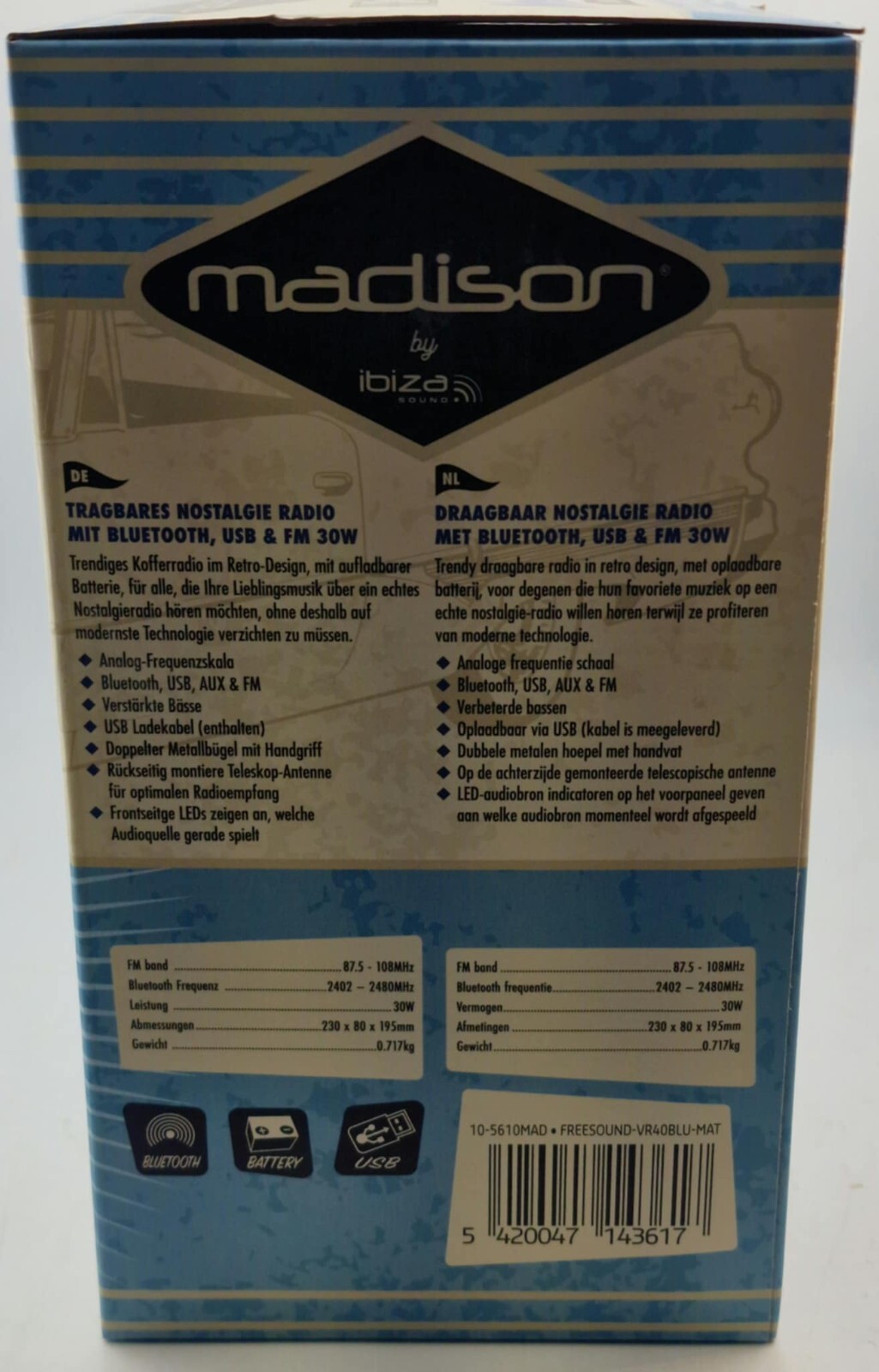 MADISON FREESOUND-VR40R Trunk Radio IN Retro-Design 30W Battery-Powered Retro
