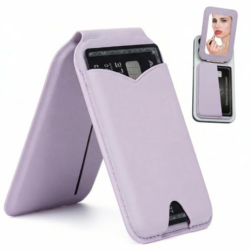 BoltSafe Mag-Safe Wallet with Mirror & Stand, Strong Magnetic Hold, RFID Blocking Card Holder, Magnetic Card Wallet for Mag-Safe iPhones, Slim MagSafe Accessory for iPhone case. (Lilac)