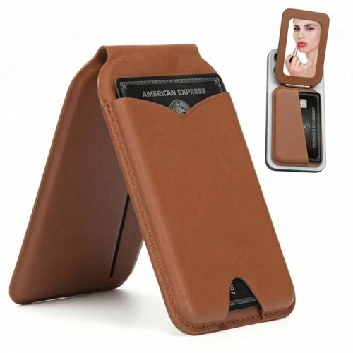 BoltSafe Mag-Safe Wallet with Mirror & Stand, Strong Magnetic Hold, RFID Blocking Card Holder, Magnetic Card Wallet for Mag-Safe iPhones, Slim MagSafe Accessory for iPhone case. (Brown)
