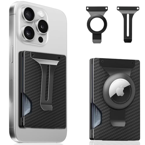Magnetic Phone Wallet Compatible with Apple MagSafe - Metal Card Holder with AirTag Holder, RFID Blocking & Money Clip Mag Safe Wallet for iPhone 16 15 14 13 12 Pro Max/Pro/Plus/Mini,Carbon Fiber