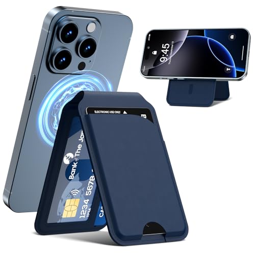 MOFT Card Holder for iPhone 16/15/14/13/12 Series, MagSafe Wallet Phone Stand Compatible with MagSafe, MOVAS Vegan Leather Magnetic Wallet with 2 Cards Holder (Navy Blue)