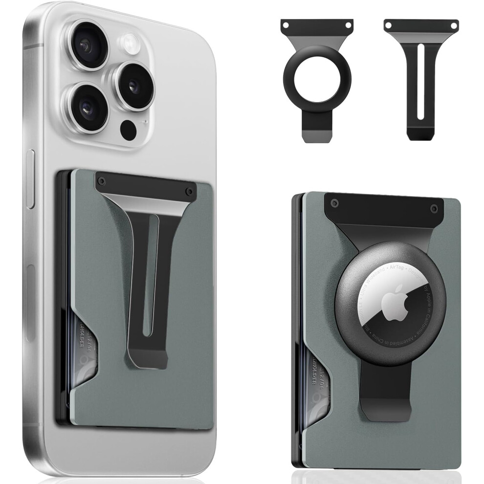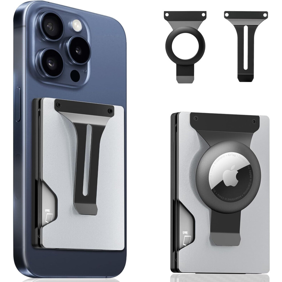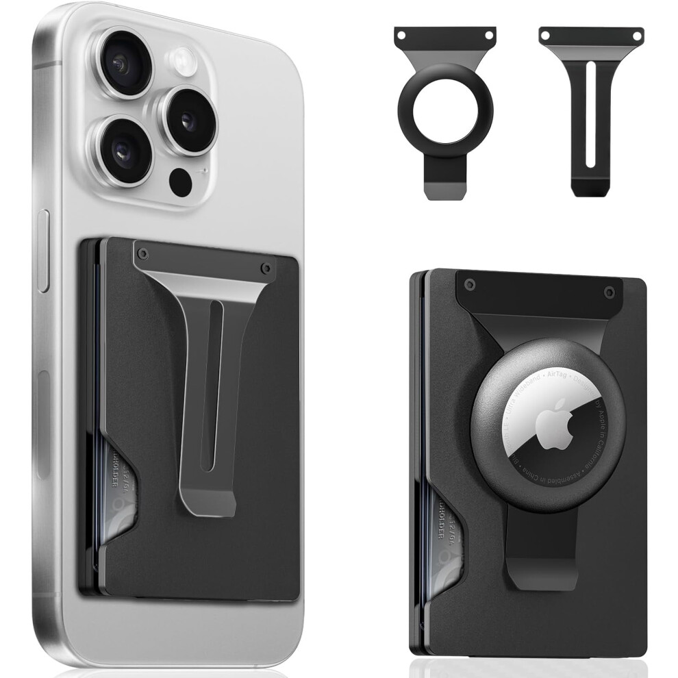 Magnetic Phone Wallet Compatible with Apple MagSafe - Metal Card Holder with AirTag Holder, RFID Blocking & Money Clip Mag Safe Wallet for iPhone 16 15 14 13 12 Pro Max/Pro/Plus/Mini,Matte Black