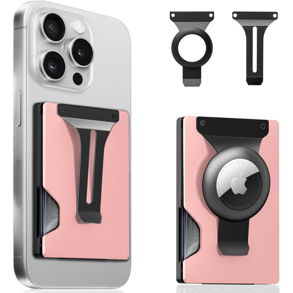 HIESGIE MagSafe Wallet Compatible with iPhone 16/15/14/13/12 Series, Mag Safe Card Holder with Money Clip & RFID Blocking, Slim Metal Wallet for Women, Minimalist Magnetic Phone Wallet, Pink