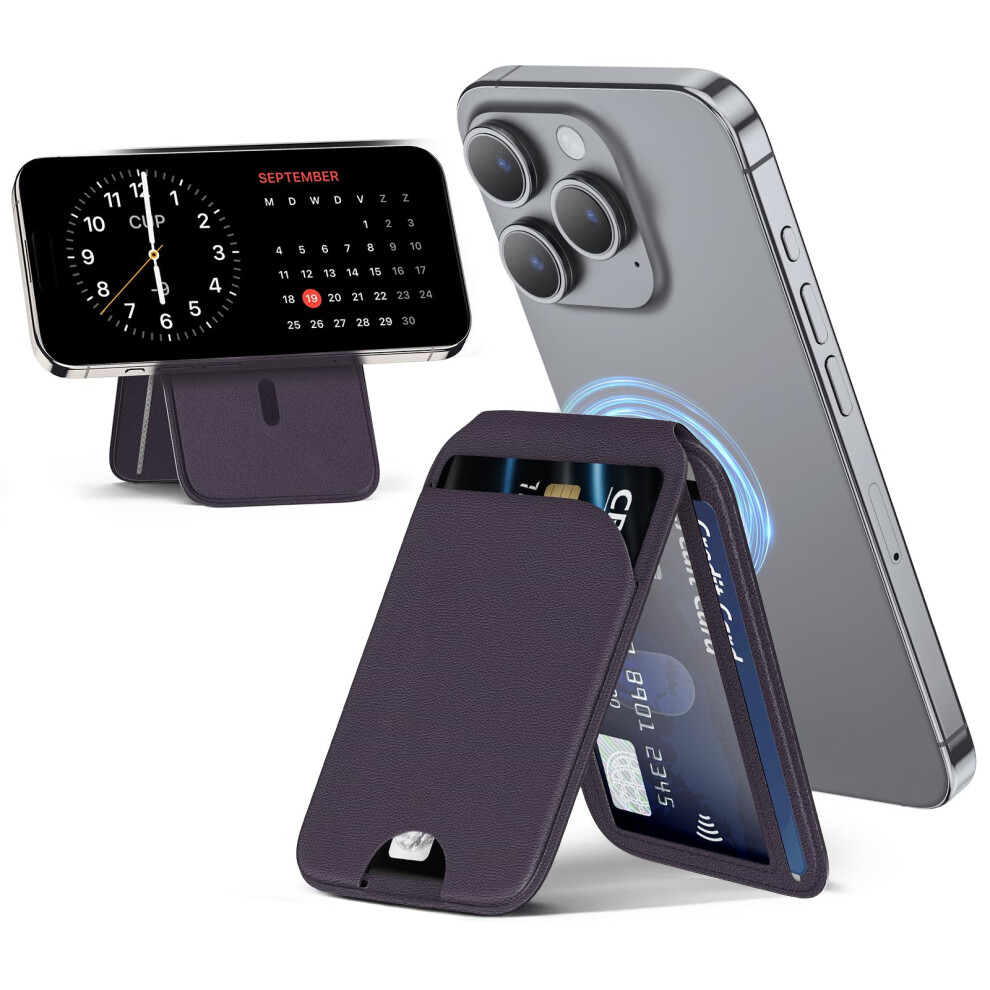 Compatible with Mag-Safe Wallet Wallet for iPhone 12/13/14 Mini/Plus/Pro/Max, RFID Card Holder with Mag-Safe Magnet(Purple)