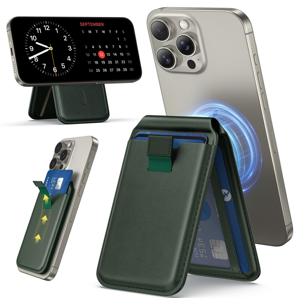 Compatible with Mag-Safe Wallet Wallet for iPhone 12/13/14 Mini/Plus/Pro/Max, RFID Card Holder with Mag-Safe Magnet (Sequoia Green)