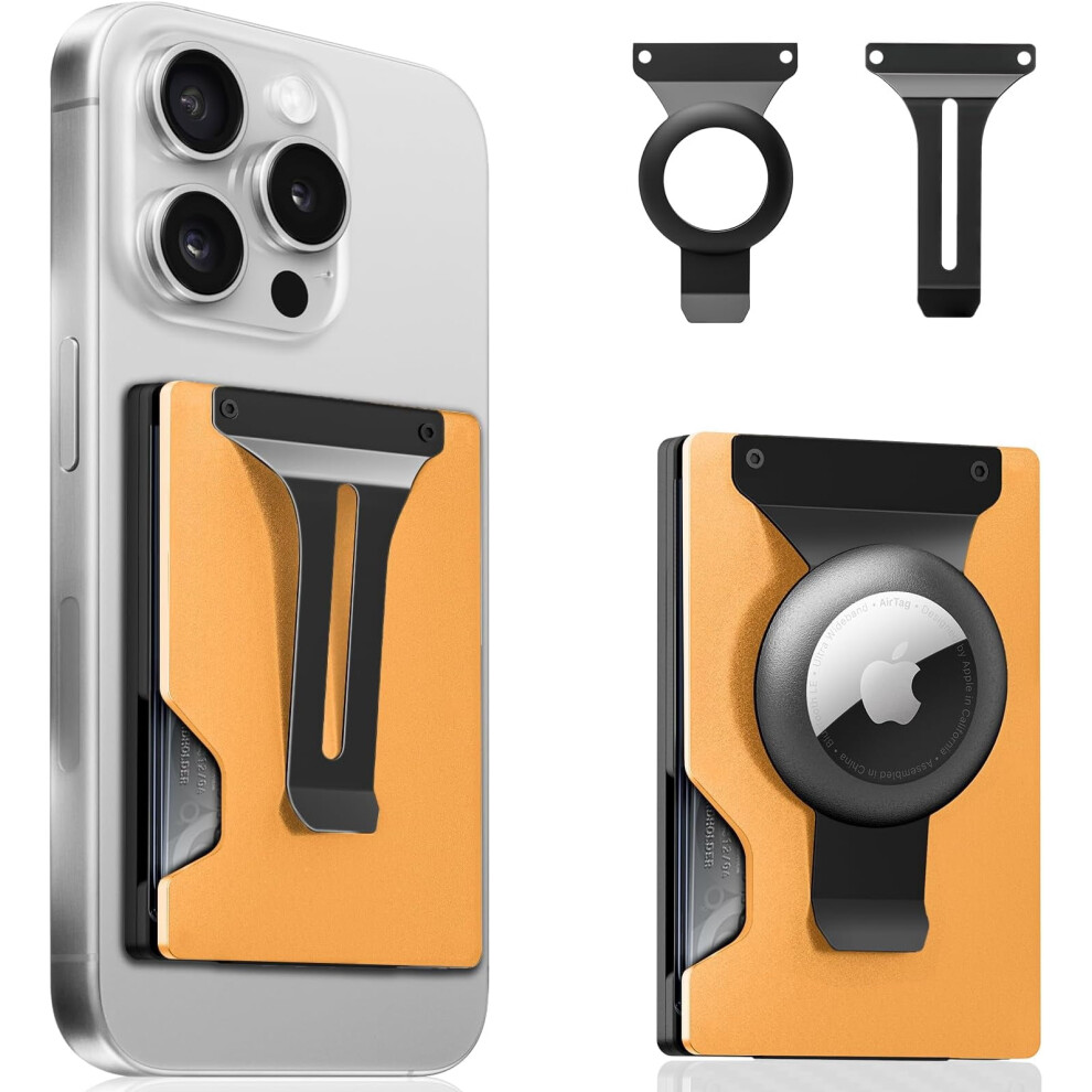 HIESGIE MagSafe Wallet Compatible with iPhone 16/15/14/13/12 Series, Mag Safe Card Holder with Money Clip & RFID Blocking, Slim Metal Wallet for Men, Minimalist Magnetic Phone Wallet, Orange