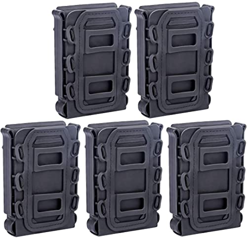 Tactical Mag Pouch Molle, 5 PCS Fast Magazine Holders, TPR Flexible Wargame Pouch Bag Molle for Nerf Paintball Airsoft 5.56 Mag, 7.62 Mag (5 PCS)