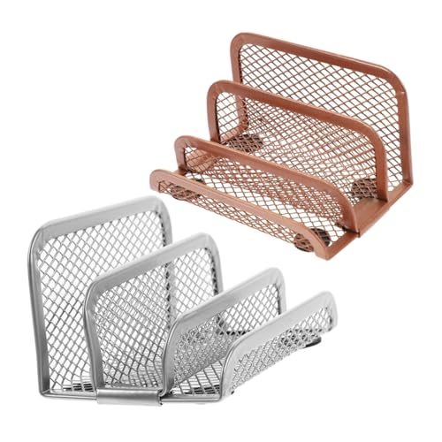 HOMSFOU 2pcs Metal Mesh Document Rack Standing Book Holder Office Desktop Magazine Rack Letter Holders for Home Decorative Book Organizer