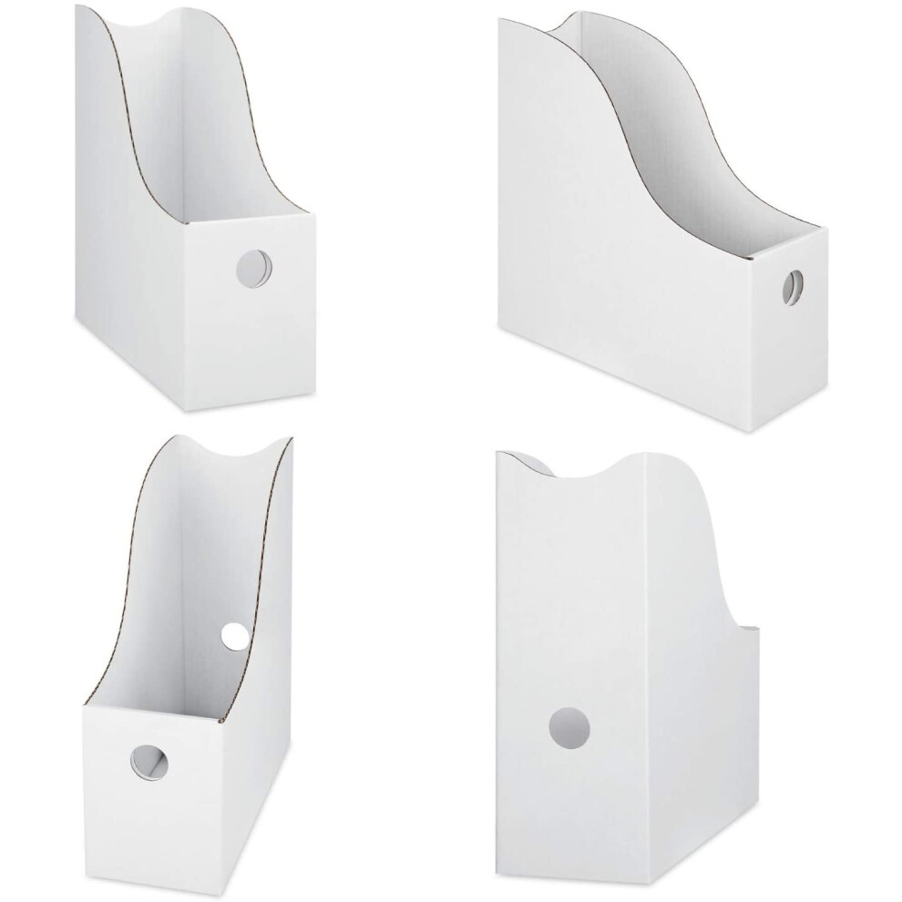 JiaWei Pack of 3 Magazine File Holders, 10.5 cm Wide, Made of 1800 g/m² Extra Sturdy Cardboard, A4 Document & Magazine Rack, for Storing Books Office Supplies - White