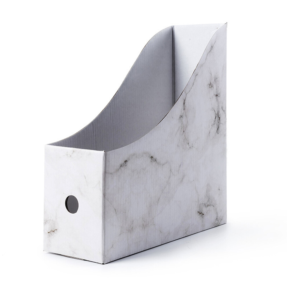 BLU MONACO Set of 4 Elegant Magazine Holders with White Marble Design and Gold Label Holders - Perfect File Holder for Desk, Magazine Storage for Hom