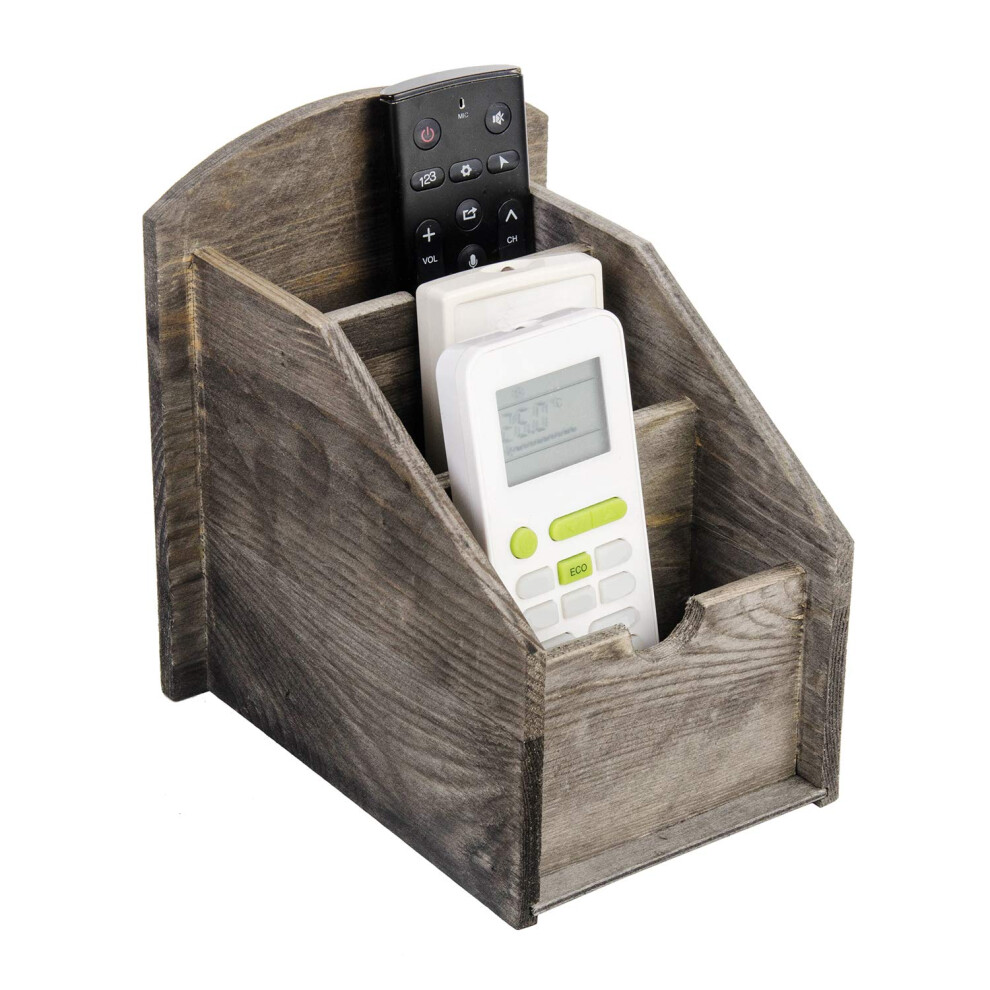VERGOODR 3 Slot Rustic Wooden Remote Control Frame Media Organizer Office Supply Storage Magazine Pen Holders (Rock grey)