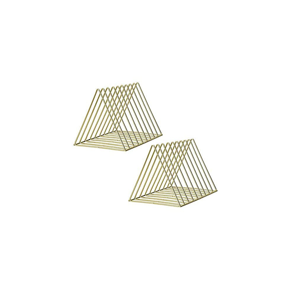 Beihaoer 2 pcs Magazine Newspaper Holders, Desktop Iron Storage Rack Bookshelf Multifunction Triangle File Organizer Decor Home Office Bookcases (Gold)
