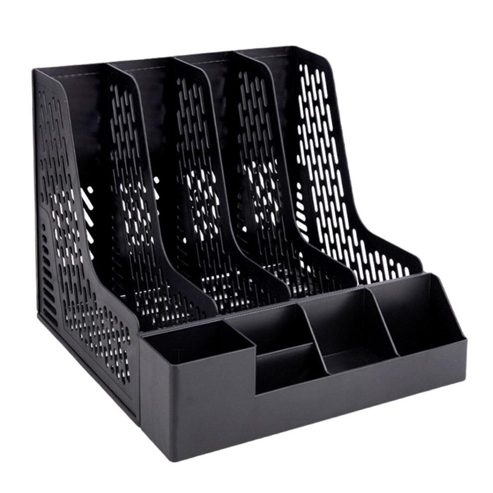 Sturdy Desktop Quadruplicate Magazine Plastic Holders Frames File Dividers Document Cabinet Rack Display and Storage Organizer Box Black