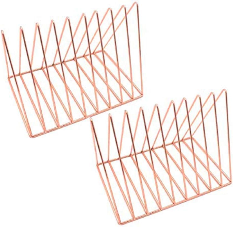 Beihaoer 2 pcs Magazine Newspaper Holders, Desktop Iron Storage Rack Bookshelf Multifunction Triangle File Organizer Decor Home Office Bookcases (Rose Gold)