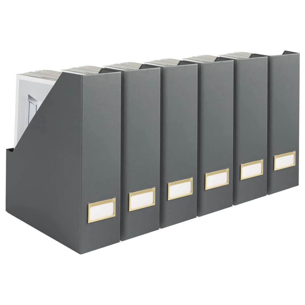 BLU MONACO D?cor and Organization with a Set of 6 Cute Magazine Holders Foldable File Boxes in Grey with Gold Label Holders - Home Office D