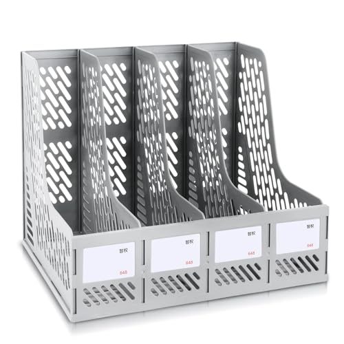 ASelected File Holder Folding Bookshelf,4 Vertical Plastic Magazine Holders Desk Organizer Document Folder For Office Organization And Storage (Grey)