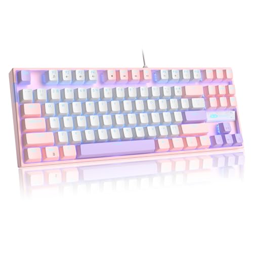 MageGee 75% Mechanical Gaming Keyboard with Red Switch, LED White Backlit Keyboard, 87 Keys Compact TKL Wired Computer Keyboard for Windows Laptop PC Gamer - Cherry Pink