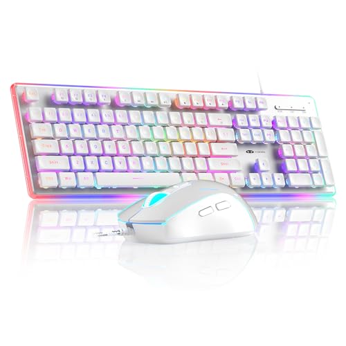 MageGee K1 RGB LED Backlit Gaming Keyboard and Mouse Combo for PC/Laptop (White)