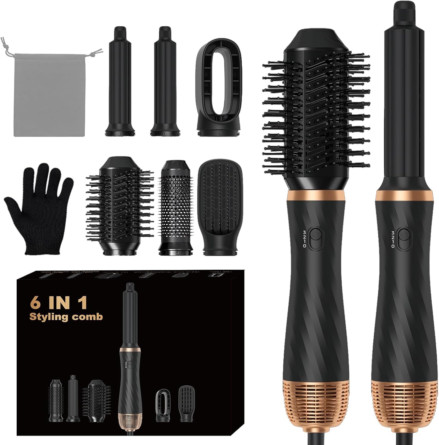 6 in 1 Magic Styler Airbrush 1000W Air Styler Set Curl Straighten Dryer Brush