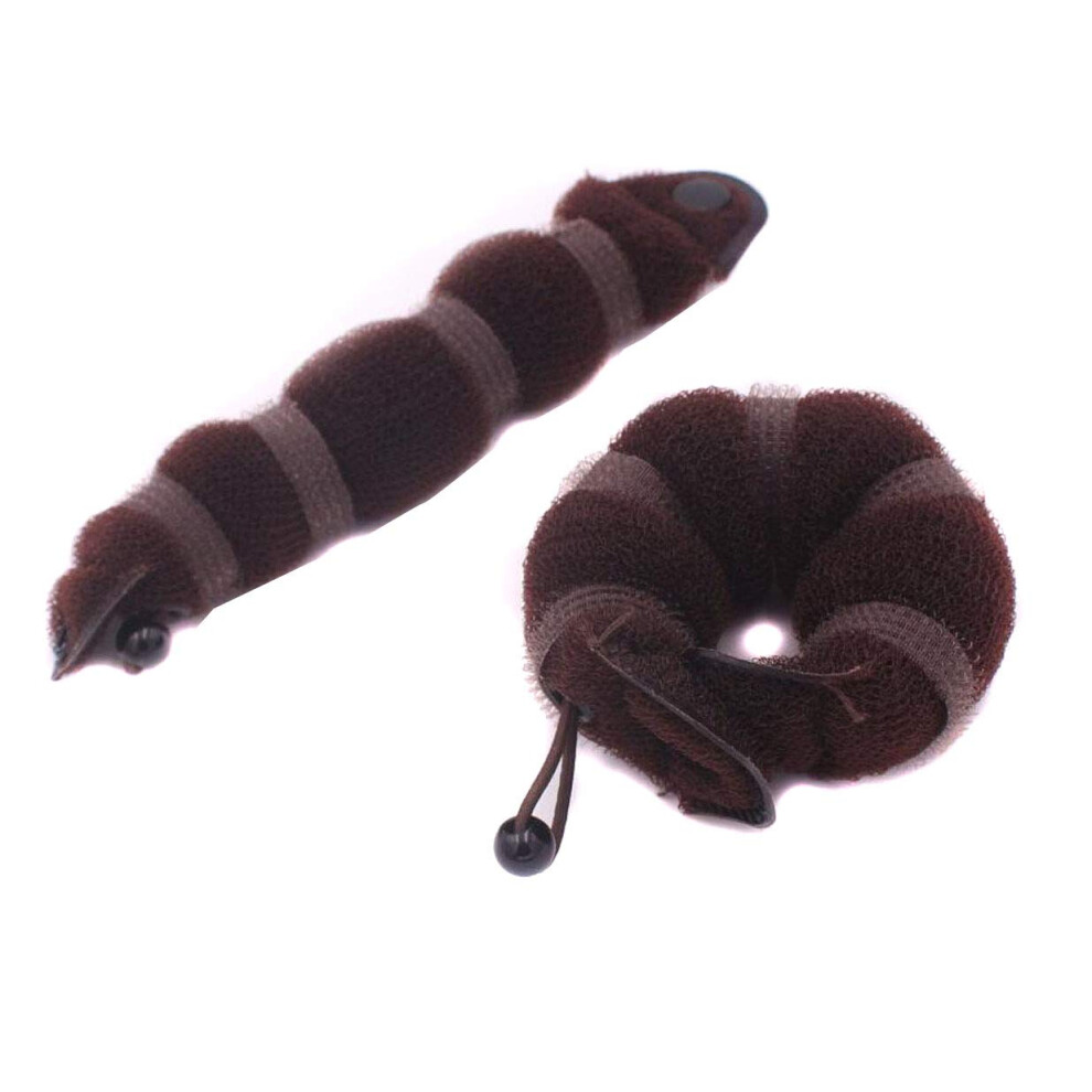 DNHCLL Set of 2 Brown Magic Hair Styling Styler Hot Hair Donut Bun Ring Styler Maker for Women Lady Girls (1 large+1 small)