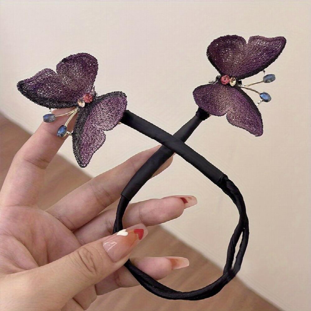 Embroidery Double Butterfly Hair Tie Magic Twist Rotated Hair Band Female Hair Styler Bun Maker