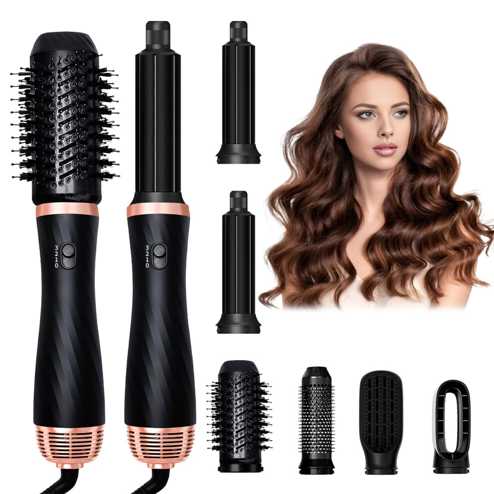 Airbrush 6 in 1 Hair Styler 200 Millions Negative Ionic Hot Air Styler Set Magic Styler 1000W Blow Dryer Brush Set with Curl, Straighten, Volumise