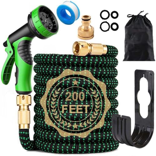 200FT Expandable Garden Hose Pipe, 10 Pattern Spray Nozzle Flexible Expanding Magic Watering Hose with 3/4" 1/2" Fittings, Easy Storage