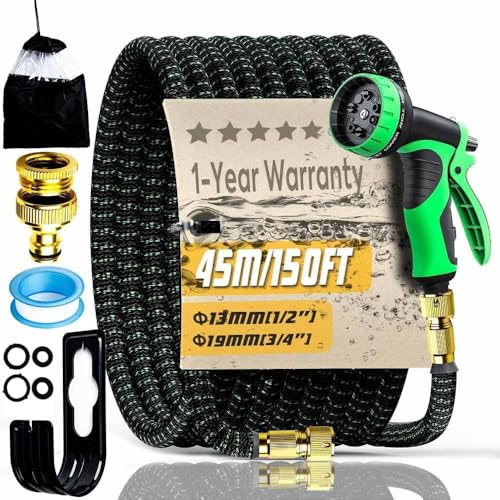 150FT Expandable Garden Hose Pipe Set & 10 Pattern Spray Nozzle Flexible Expanding Magic Hose with 3/4" 1/2" Fittings for Outdoor,Garden,Home