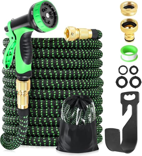 Expandable Garden Hose Pipe 100FT 3 Times Flexible Expanding Magic Lightweight Watering Hose Anti-Leakage with 3/4" 1/2" Solid Brass Fittings 8 Function Spray Nozzle (Green)