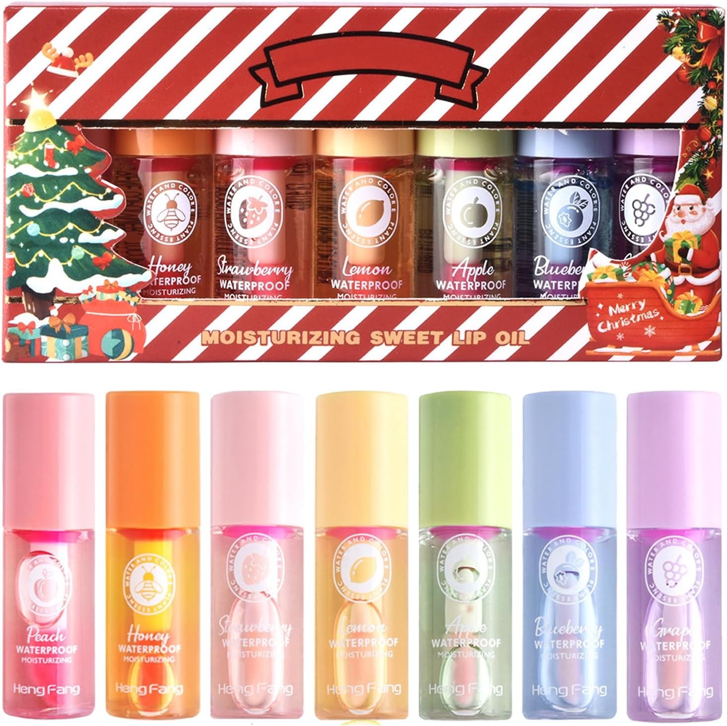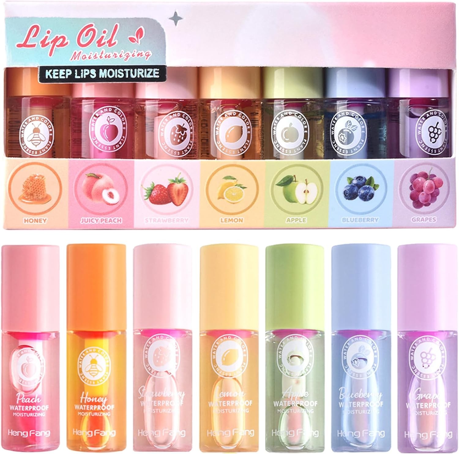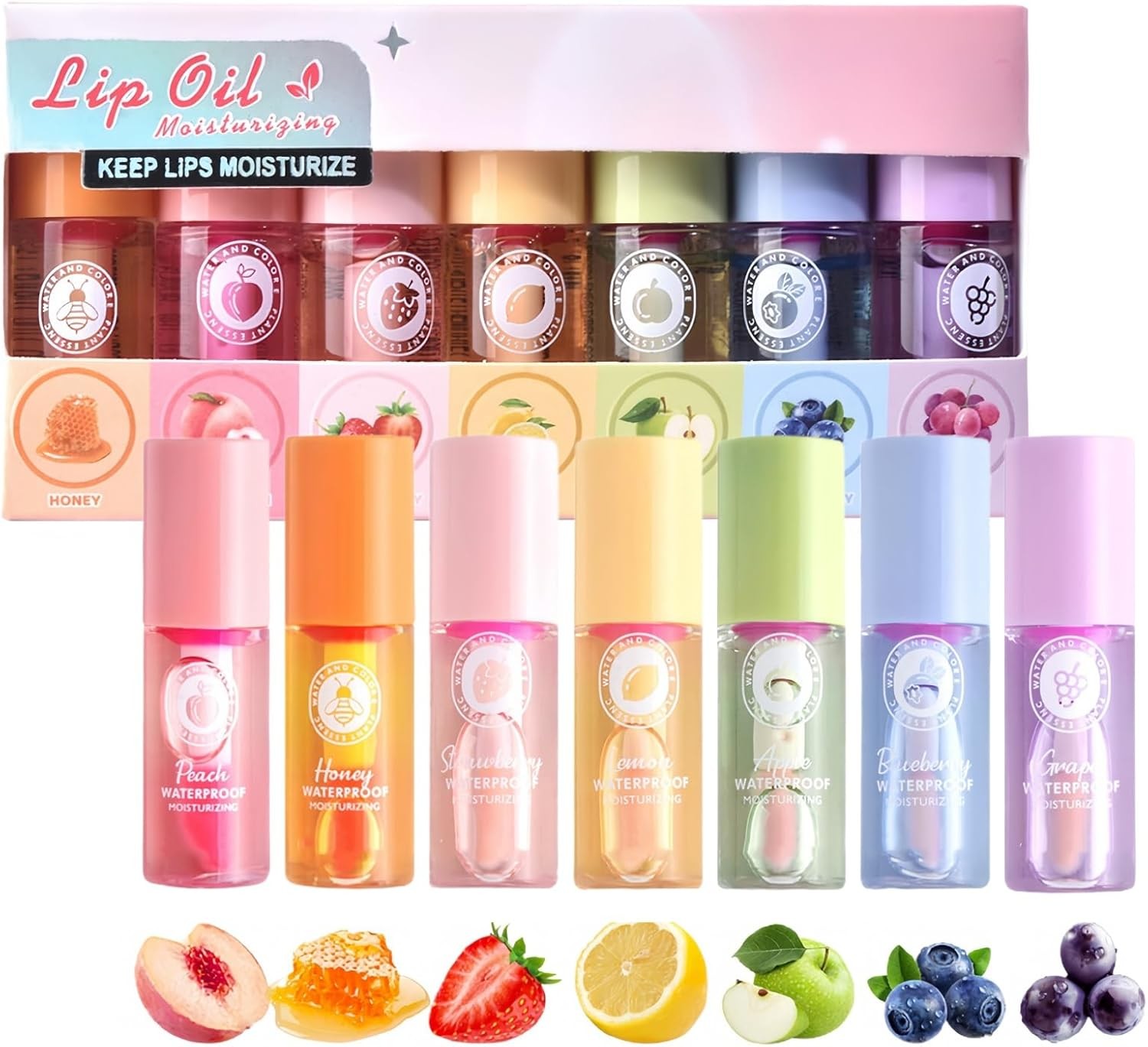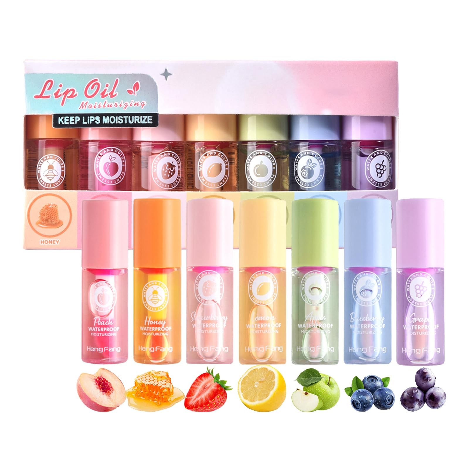 7 Pcs Hydrating Lip Oil Set, Fruit-Flavored Plumping, Mini Lip Gloss Set Magic