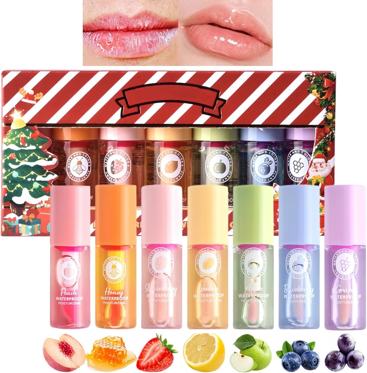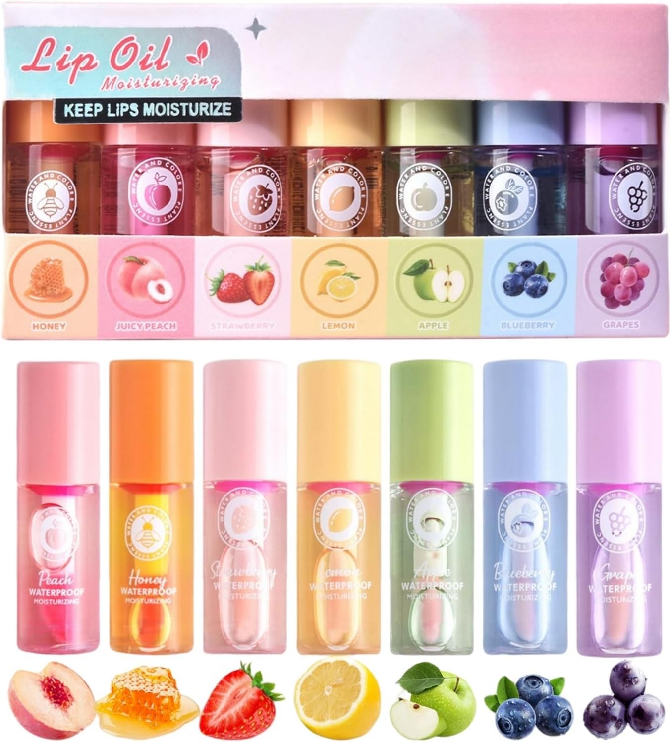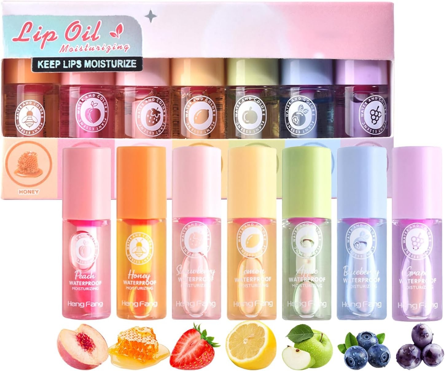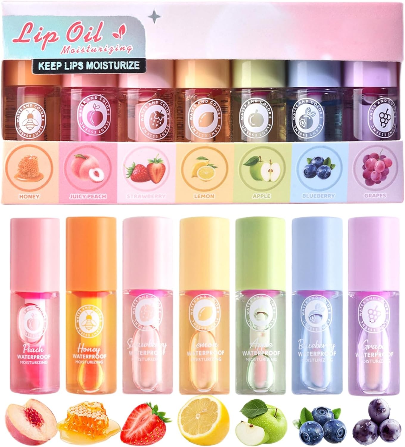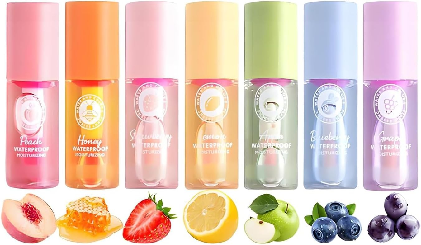 7 Pcs Hydrating Lip Oil Set, Fruit-Flavored Plumping, Mini Lip Gloss Set Magic