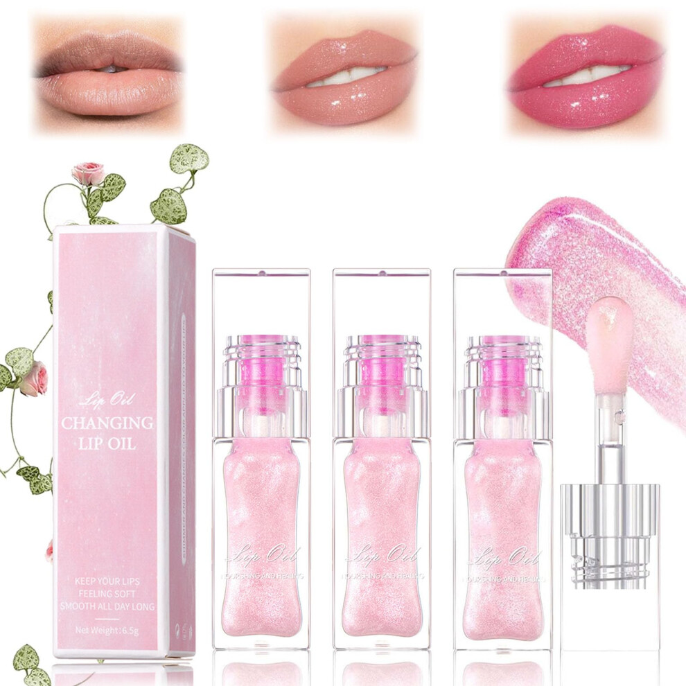 (Set B) 3PCS Color Changing Lip Oil Set, Magic Color Changing Moisturizing Lip Glow Oil, Warm Change Non-sticky Nourishing Transparent Lip Gloss