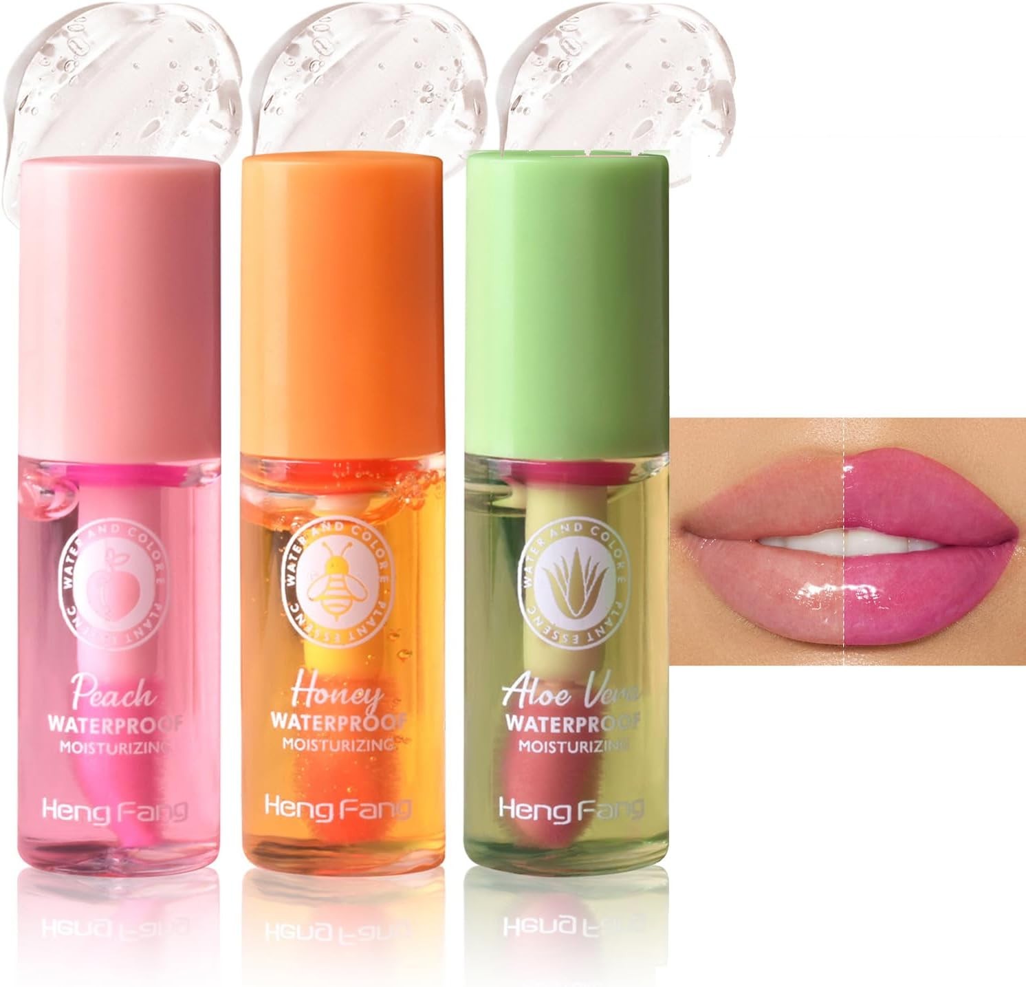 3 Pcs Lip Gloss Set, Magic Color-Changing Lip Oil, Hydrating Plumping Lip Gloss,