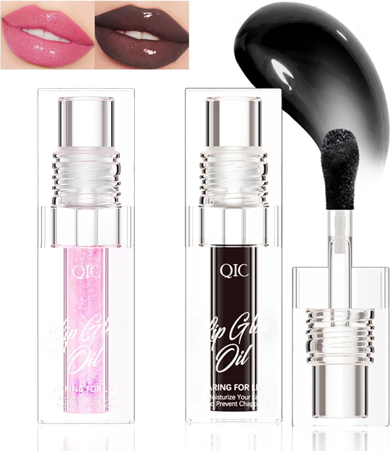 2Pcs Magic Color Changing Lip Oil,Big Brush Head Hydrating Pink Lip Gloss,Moist