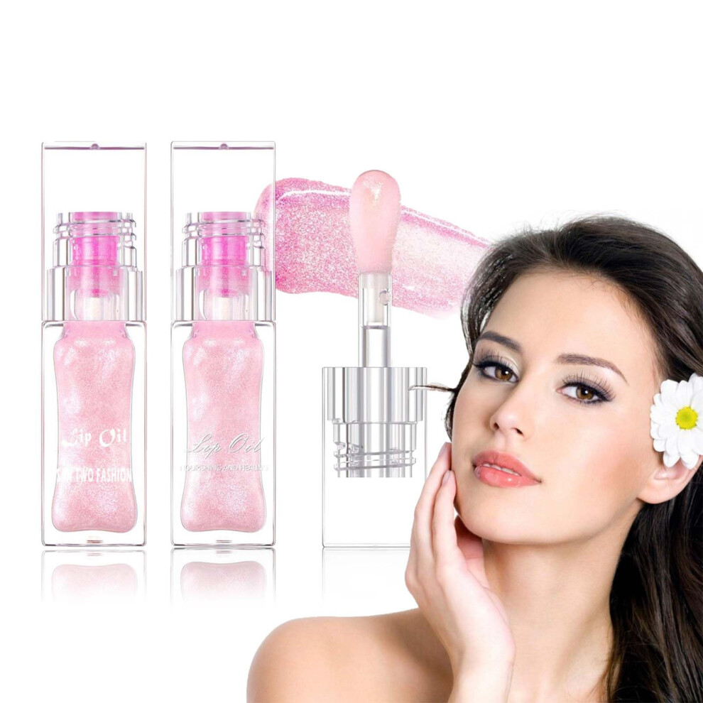 2Pcs Magic Color Changing Lip Oil,Big Brush Head Hydrating Pink Lip Gloss,Moistu