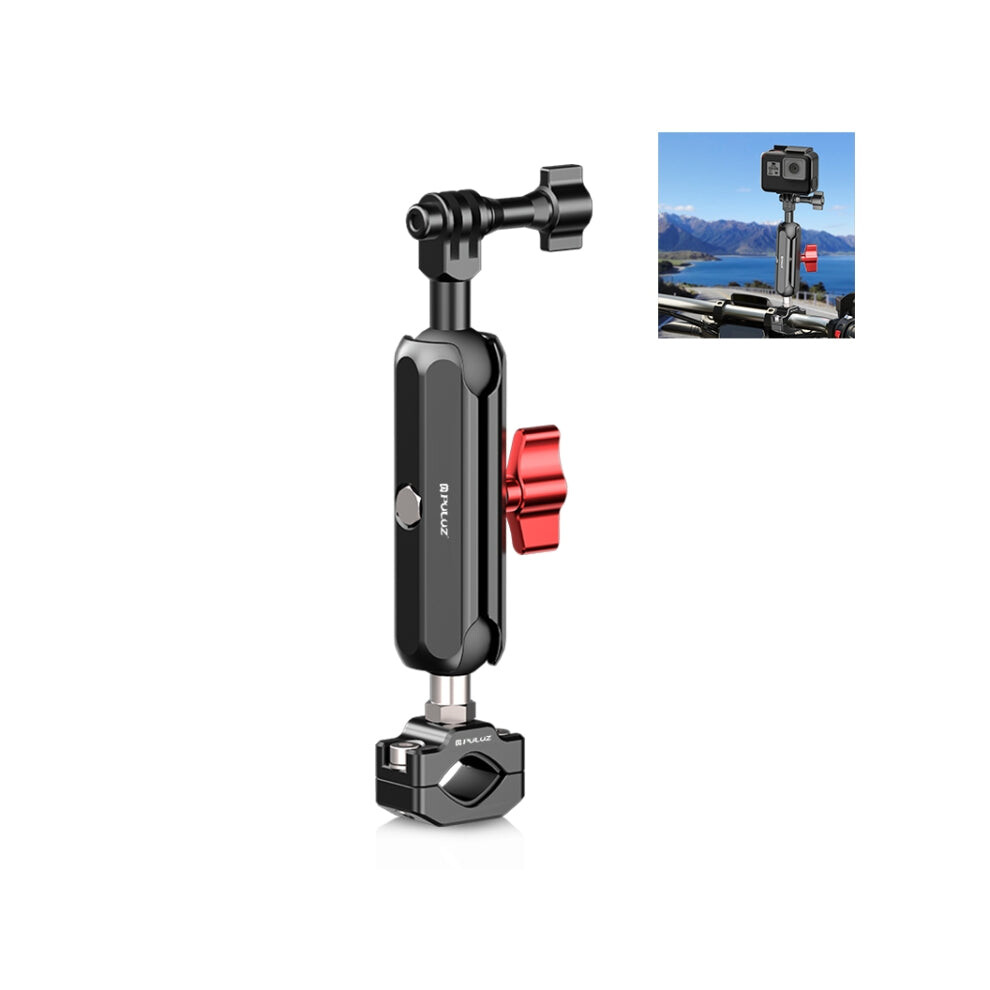 PULUZ Motorcycle Rearview Large Clamp CNC Metal Magic Arm Rod Mount