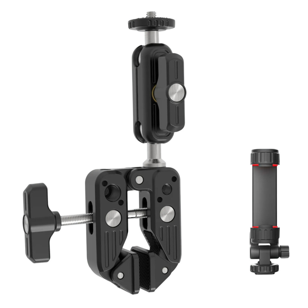 JMARY MS-90 Super Clamp for Action Cameras with Phone / Camera Clamp Mount Magic Arm Double Ball Head Adapter