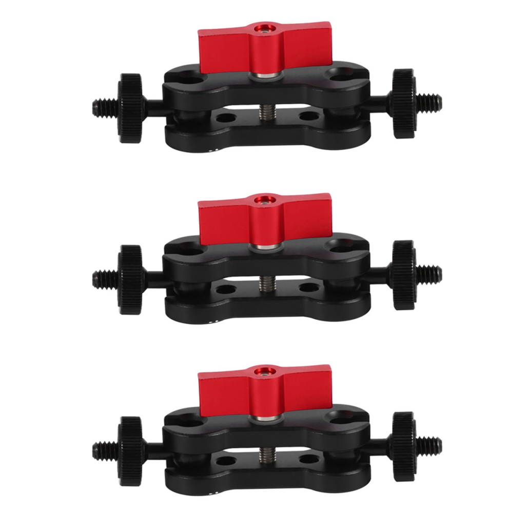 3X Dual Ball Hot Shoe 1/4 Inch Tripod Magic Arm Mount Adapter DSLR Camera Accessory for Monitor LED Light Red