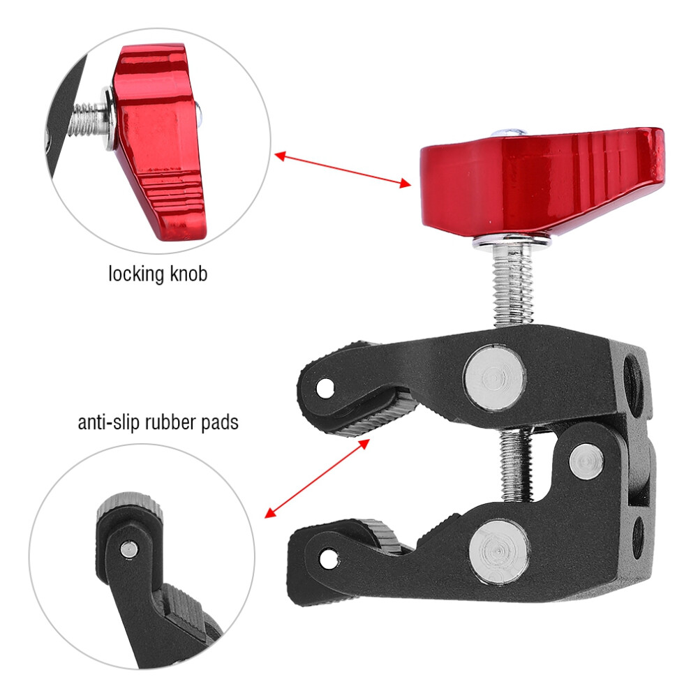 .›Aluminum Alloy Articulating Magic Arm Mount Clamp 1/4'' & 3/8'' Clip Photogra